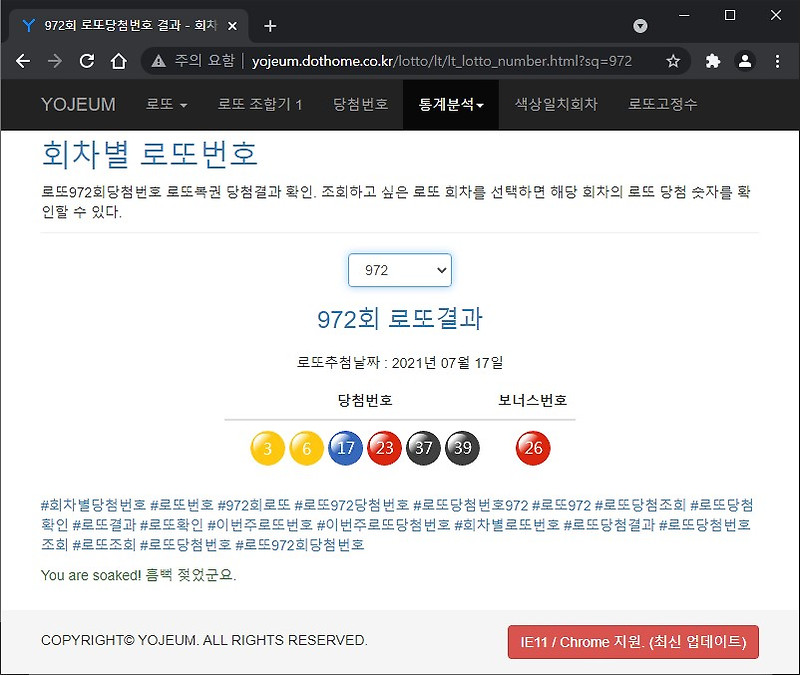 로또 972회 당첨번호 분석 및 973회 당첨예상번호 무료 공개 from blog.kakaocdn.net Prev 천안함 생존자 처우에 대한 불편한 진실 천안함 생존자 처우에 대한 불편한 진실 2021.06.13by 테스토스테론 싱글벙글 워터파크 next 싱글벙글 워터파크 2021.06.13by 감성뒤진다잇 상품 주문, 배송 및 환불의 의무와 책임은 각 판매 업체에 있습니다. 지난 5일 진행된 제966회 로또 1등 당첨번호는 1·21·25·29·34·37이며, 보너스 번호는 36이다. Jun 19, 2021 · 하루의 시작과 끝 김짤로 오세요!! Jun 13, 2021 · 하루의 시작과 끝 김짤로 오세요!! 1 next 더쎄게 달려라 달려!! Jun 07, 2021 · 제966회 로또복권 당첨번호가 발표됐다. Jun 30, 2021 · 972 3 잡담: